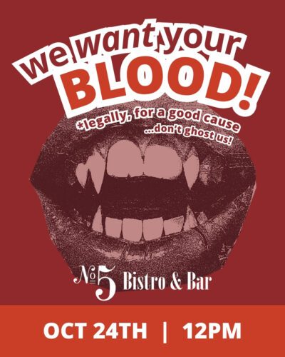 The one where we pretend eggs + champagne is a balanced meal. Bonus: college football on the TVs. - Blood Drive – Oct. 24