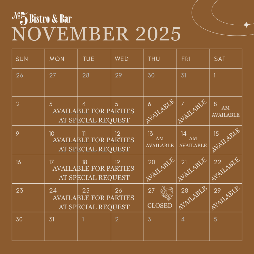 No. 5 Bistro & Bar: Because the Best Gift Is Brunch… and Also Lunch… and Also Dinner
